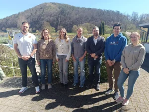 V.l. Roland Heid (2. Vors.), Heribert Strykowski (Breitensport), Tobias Ebert (Schiedsrichter), Volker Eichert (Sport), Dr. Martin Vocke (1. Vors./Jugend), Dörthe Leopold (Vors. Rechtskammer), Walter Erhard (Ehrenvors.), Andre Maier (Presse), Bernd Kleinhenz (Finanzen). Es fehlen Klaus Perneker (Schulsport) und Christian Graf (Trainer).
